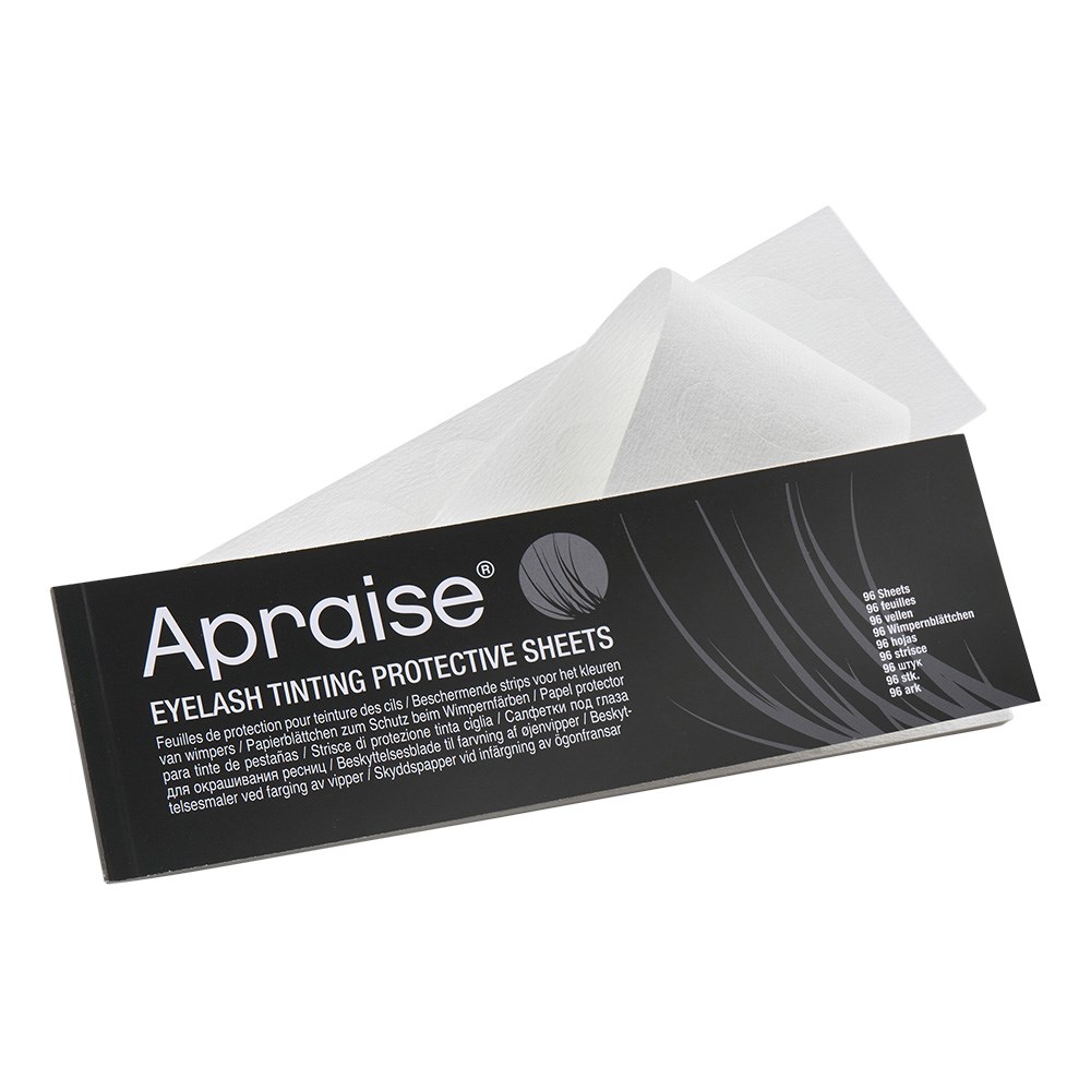 Apraise Eyelash Tinting Protective Sheets are high quality, pre-shaped protective eye sheets. Prevent skin from staining during eyelash tinting procedures. Includes 96 sheets. Made in the UK.