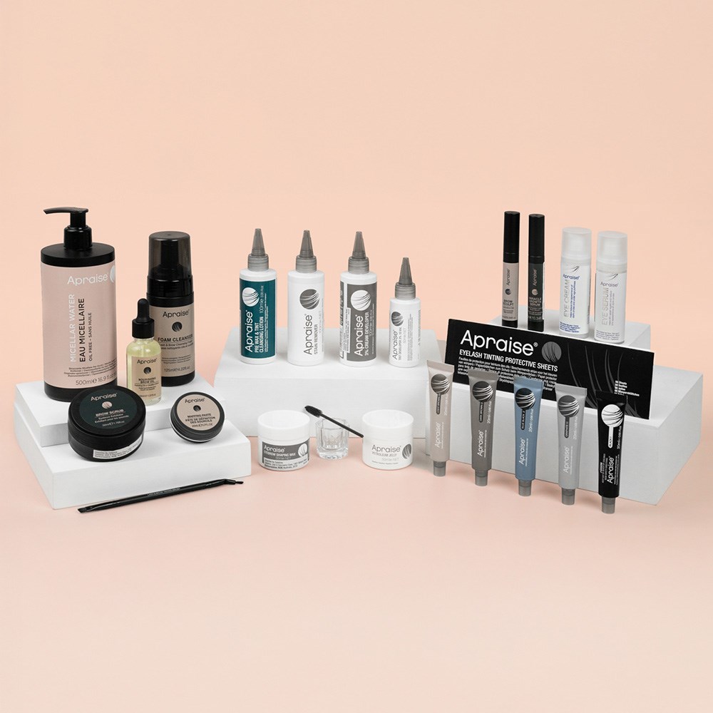 The definitive lash and brow experience. Apraise Lash and Brow Maintenance Display is a 37 piece display which makes an impact. This stylish, lightweight display is perfect for showcasing the Apraise Eyelash and Eyebrow maintenance collection. Vegan with intermixable shades to create perfect bespoke colour every time. Made in the UK. Good brows. Good lashes. Good day. From the global leaders in professional eyelash and eyebrow tinting, Apraise.
