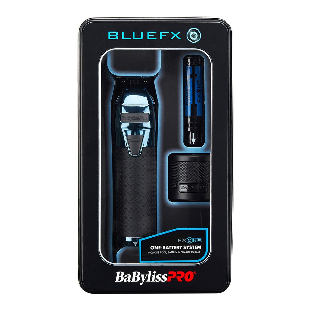An entire ecosystem of tools based on ONE battery. Change the way you work with BaBylissPRO FXONE BlueFX barbering collection. BaBylissPRO FXONE BlueFX Hair Trimmer is a professional, all metal outlining hair trimmer with a replaceable and interchangeable lithium battery pack. Quick battery release button and up to 3 hours of runtime. Exposed T-blade with 360 degree views and high torque N1 brushless motor which powers to 7,200RPM / 14,400SPM. Use this trimmer for crispy edge ups, hard lines and other detail work. Check out the BaByliss PRO FXONE BlueFX Hair Clipper, also compatible with the same battery. A revolution in efficiency!