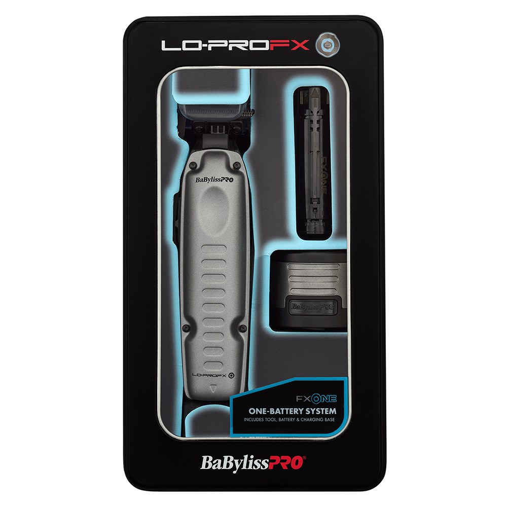 An entire ecosystem of tools based on ONE battery. Change the way you work with BaBylissPRO FXONE Lo-PROFX collection. BaByliss PRO FXONE Lo-PROFX Hair Trimmer is a high performance, ultra-low profile trimmer with a replaceable and interchangeable lithium battery pack. Quick battery release button and up to 2.5 hours of runtime. Blue DLC/titanium standard-tooth T-blade is hypoallergenic and zero gap adjustable. High torque, Italian-designed N1 brushless motor powers to 6,800rpm. Use this trimmer for crispy edge ups, hard lines and other detail work. Ultra-low profile metal shield cover with ergonomic grip for an incredibly intuitive feel.