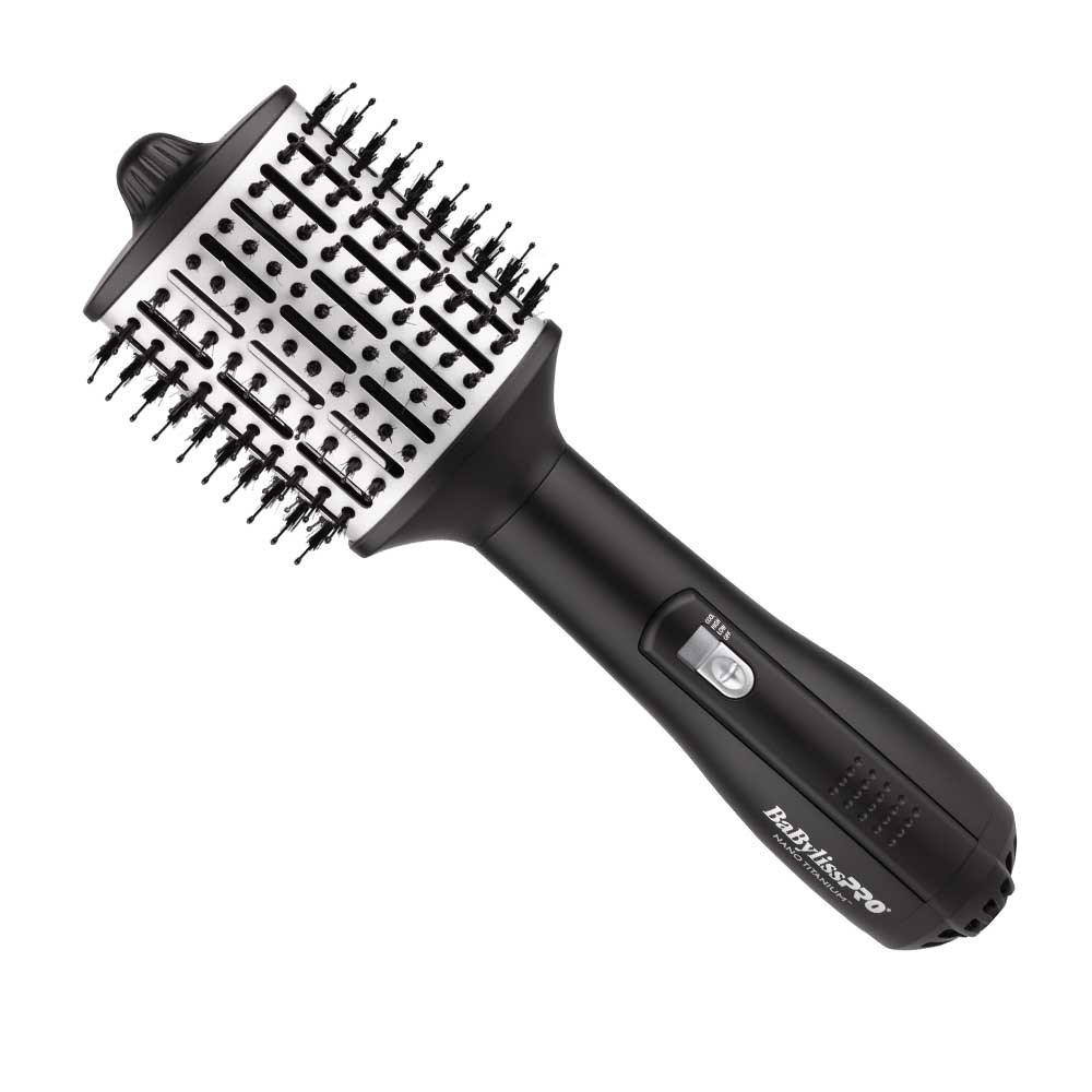 Blow-drying a chore? Styling leaves you sore? BaBylissPRO Nano Titanium Hot Air Styling Brush 89mm (3.5”) makes drying and styling a breeze. Simplify your routine with this 2-in-1 styling tool. Ultra-lightweight, ergonomic and time efficient, BaBylissPRO Nano Titanium Hot Air Styling Brush dries, smooths, volumises and adds shine in just one step. High performance 1000W DC motor combines with three temperature settings, including a cool setting to set style in place. Nano Titanium hot brush is an exceptional conductor of heat, maintaining stability and enhancing shine. 89mm (3.5”) barrel size is ideal for long hair.