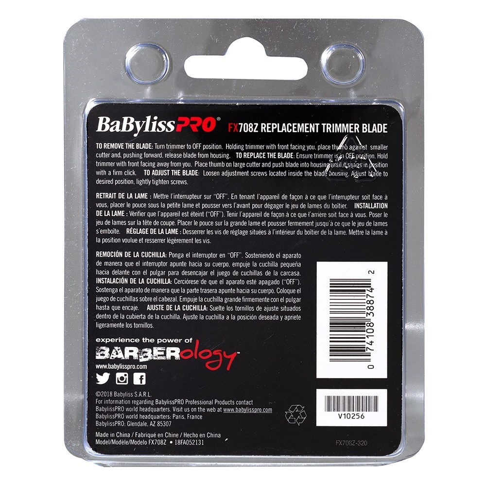The BaBylissPRO Replacement Hair Trimmer Blade Silver FX708Z is designed to be used with the BaBylissPRO SilverFX and GoldFX Lithium Hair Trimmers. The BaBylissPRO Replacement Hair Trimmer Blade in Silver is a stainless-steel trimmer blade of exceptional quality. This adjustable, zero gapped T-blade is perfectly honed for precision and detailed work. Blade is easily replaced by pushing forward on existing blade, inserting and then snapping into position.
