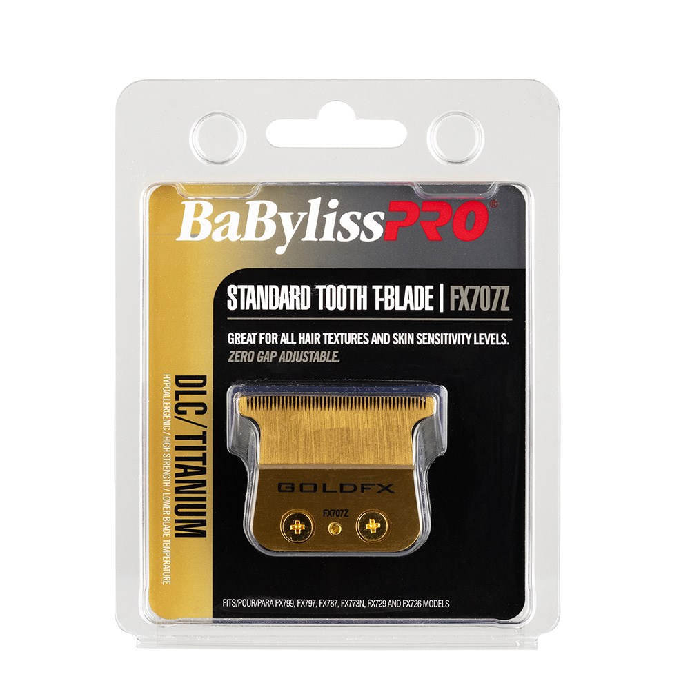 The BaBylissPRO Replacement Outliner Hair Trimmer Blade Gold FX707Z is designed to be used on all BaBylissPRO Skeleton Outliner Lithium Hair Trimmers. This adjustable, zero gapped, T-blade is perfectly honed for precision and detailed work whilst the standard tooth design makes this the perfect in-between blade for edge-ups and removing bulk. Great for all hair textures. DLC Titanium coating.