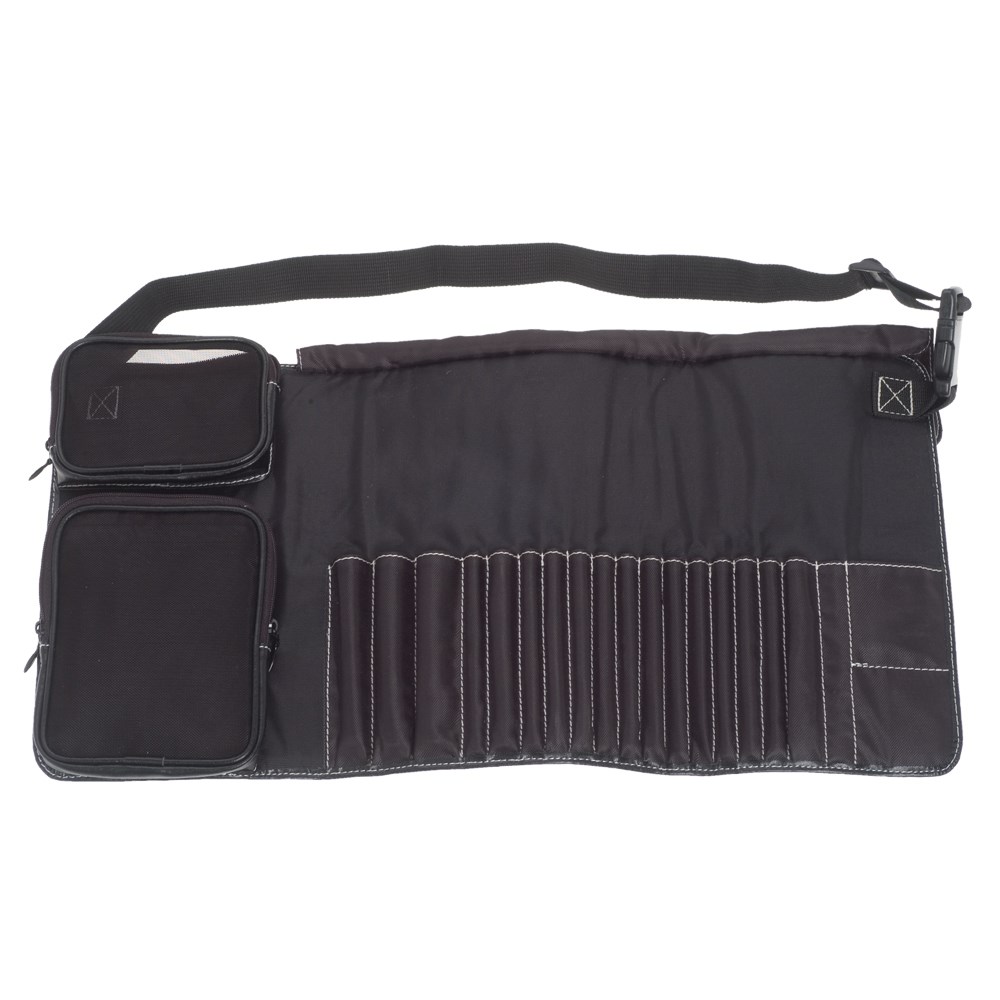 Durable, easy-to-clean with internal pockets to hold all types of make-up brushes and sponges. The BeautyPRO Make-Up Artist Belt has an adjustable strap allowing for the pouch to be comfortably worn around the waist. When you’re done, simply cover your brushes with the protective flap, fold and store. Holds 18 brushes.