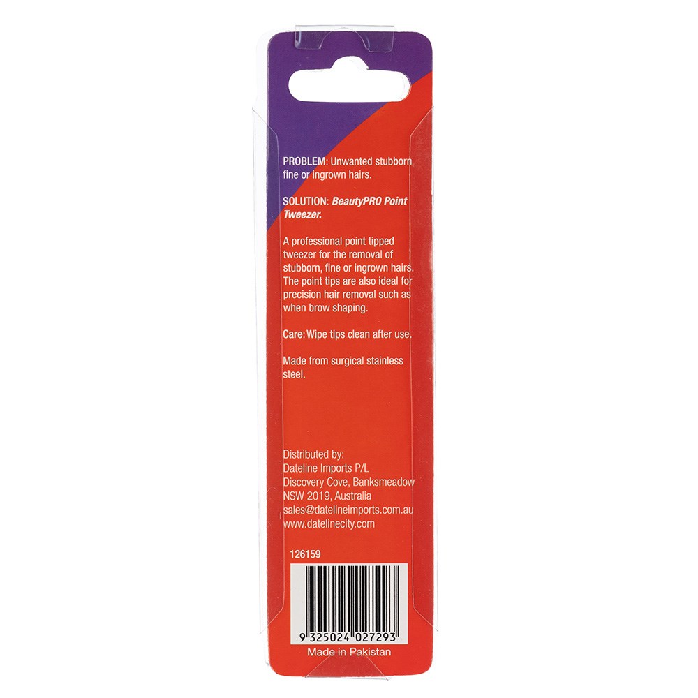 Achieve precision plucking with the BeautyPRO Point Tweezer. Designed for expert control, these high-quality stainless steel tweezers feature ultra-fine, hand-filed tips that effortlessly grip even the shortest, finest, or ingrown hairs. Ideal for detailed eyebrow shaping, lash extension application, and delicate beauty tasks, the pointed tips ensure maximum accuracy without slipping. Lightweight and comfortable to hold, the BeautyPRO Point Tweezer is perfect for both professional and personal use. Elevate your grooming routine with a tool that delivers flawless results every time.
