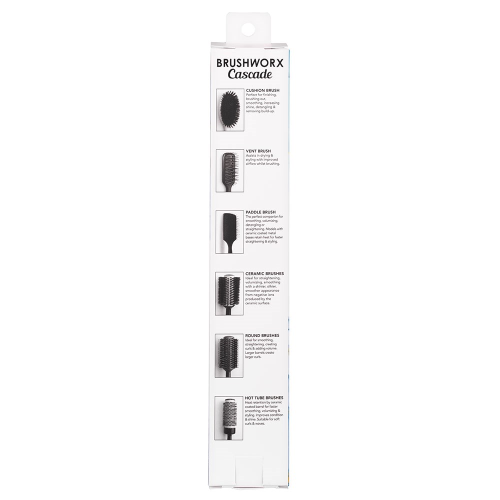A hairstylist’s favourite brush! Brushworx Cascade Hot Tube Hair Brush Extra Small takes the salon essential and makes it even better. More comfortable, more lightweight and more balanced. A texturised, rubberised handle improves grip and control. Nylon bristles create the perfect amount of tension for styling. Speed up your blow-drying time with the hollow, vented ceramic coated barrel, leaving hair silkier, shinier and smoother. Brushworx is proudly Australian-owned.