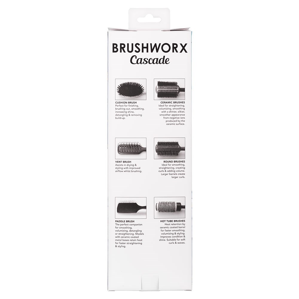 The benefits of boar bristles! Brushworx Cascade Paddle Hair Brush with Mixed Boar Bristles takes a salon essential brush and makes it even better. More comfortable, more lightweight and more balanced. This is the perfect companion for detangling, smoothing and straightening. A texturised, rubberised handle improves grip and control. Mixed boar and nylon bristles are great for detangling and enhancing hair’s own shine by distributing scalp’s oils. Brushworx is proudly Australian-owned.