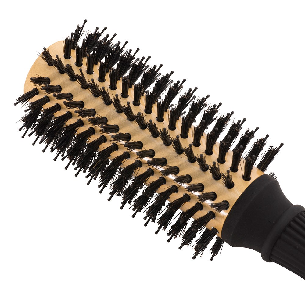 Brushworx Gold Radial Hair Brush in Small is your most rewarding styling experience yet. Create luxurious, silky hair. This premium, professional radial brush is ideal for straightening, volumising and smoothing with a shinier, silkier finish. Negative ions emitted by the ceramic component are the gold standard for lustrous results with outstanding manageability. Porcupine bristles are anti-static with superior control for styling. Small size measures 45mm bristle to bristle.