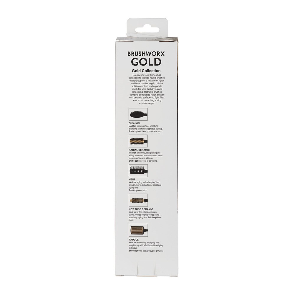Brushworx Gold Vent Hair Brush is your most rewarding styling experience yet. Create luxurious, silky hair. This premium, professional vent brush speeds up blow-drying time by allowing optimal airflow for a shinier, silkier finish. The gold standard for lustrous results with outstanding manageability. Great for styling shorter hair, as well as creating volume on finer hair types.