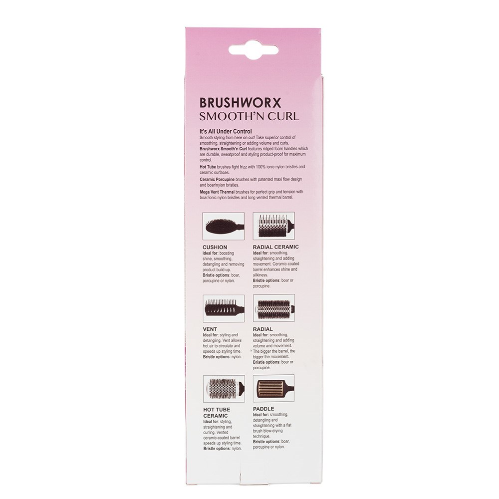 It’s smooth styling from here! Take control of smoothing, straightening or adding volume and curls. Brushworx Smooth’n Curl Mega Vent Thermal Brushes feature ridged foam handles which are durable, sweatproof and styling product-proof for maximum control. Mega Vent Thermal brushes are designed for the perfect grip and tension with boar/ionic nylon bristles and a long, vented thermal barrel. From Brushworx, the 100% Australian-owned brush authority.
