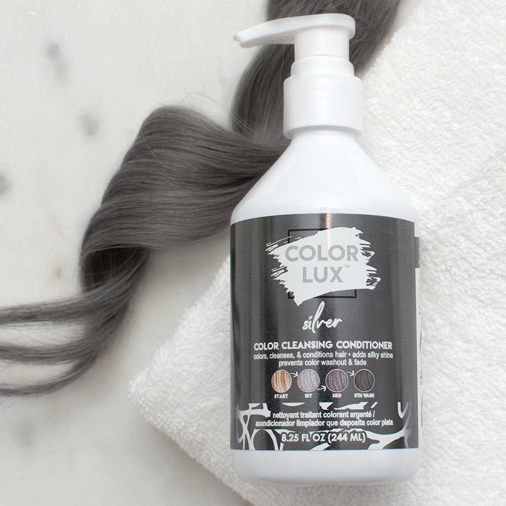 Deposit buildable colour with every wash. Color Lux Colour Cleansing Conditioner Silver cleanses, conditions and colours - good things come in threes! Designed to gently cleanse and condition hair while depositing colour pigments, adding beautiful hues to hair. The more clients use, the more vibrant the colour. Intensifies and maintains existing hair colour between salon visits. Blended with coconut oil for alluring shine.
