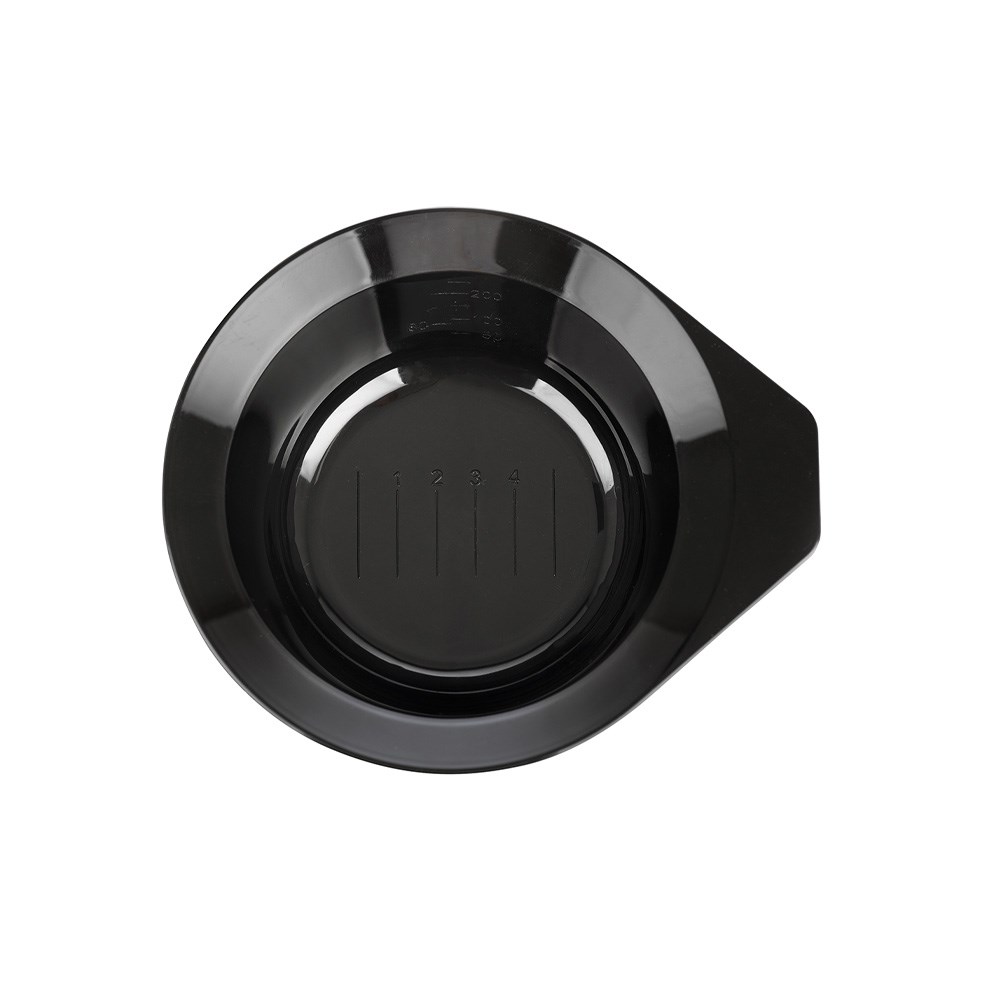 Mix it up in a Dateline Professional Black Tint Bowl! This ‘salon staple’ is the perfect size, shape and material to create the ideal mixture for an even application. Featuring a side handle for easy lifting and a rubberised grip on the base to prevent sliding. Measurement markings on the bottom and side of the bowl for accurate results. Easy to clean, stack and store!