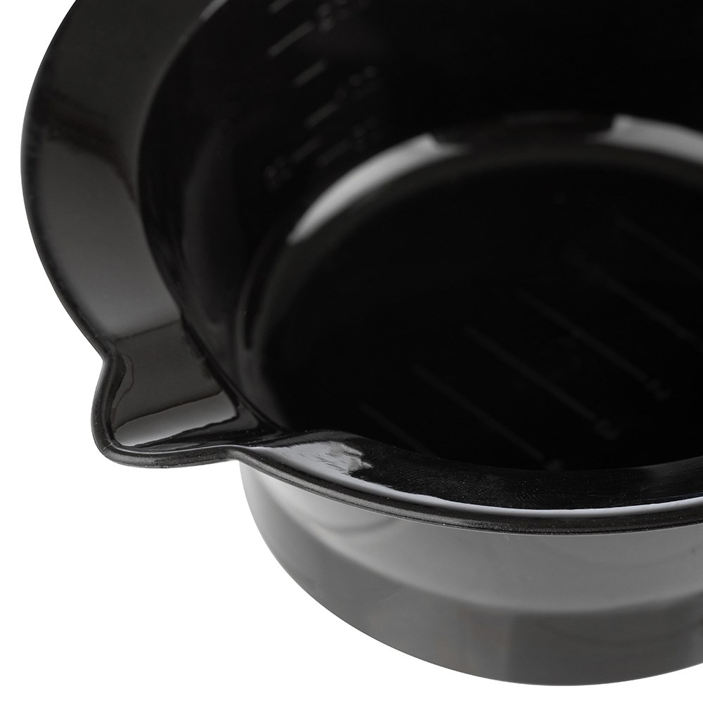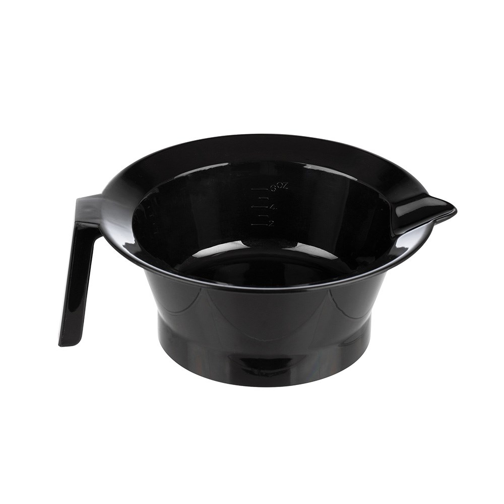 Mix it up in a Dateline Professional Black Tint Bowl with Handle! This ‘salon staple’ is the perfect size, shape and material to create the ideal mixture for an even application. Featuring a side handle for easy lifting and a rubberised grip on the base to prevent sliding. Spout edge to allow easy pouring without the mess and measurement markings on the bottom and both sides of the bowl for accurate results. Easy to clean, stack and store!