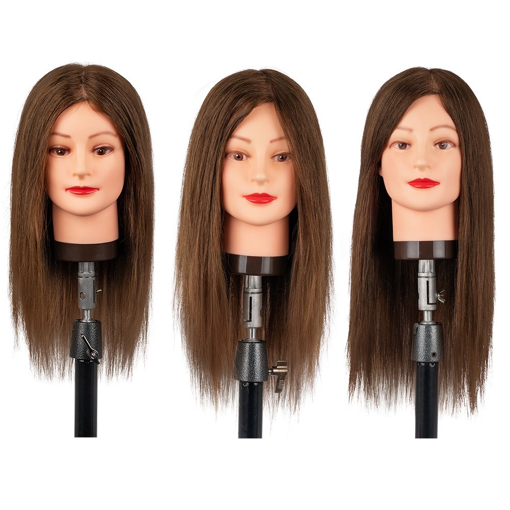 Dateline Professional Designer Collection Mannequins are the perfect combination of premium quality and economical pricing. Made with authentic Indian hair, this collection is designed with long, increased layers and implantation, providing a natural look, while offering versatility for all styling, cutting, colouring and perming. Dateline Professional Designer Collection Amber Mannequin features medium-long 16” hair with increased layers in AAA grade Indian hair.