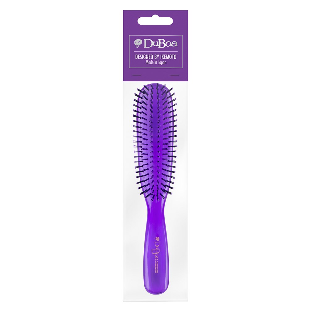 The brush which began the detangling revolution. DuBoa 80 Detangler Large Hair Brush Purple is a true one-of-a-kind. Made in Japan, this brush is crafted with extraordinarily flexible nylon bristles set together in groups of four. The result? The gentlest of detangling without unnecessary damage, breakage and split ends. This daily brush distributes hair’s own oils for a gorgeous sheen. Great for all hair types, even the thickest of manes. Everyone should own a DuBoa.