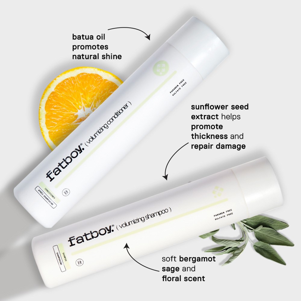 Fatboy Volumising Conditioner is a carefully crafted blend of select ingredients. Wheat protein strengthens the hair shaft, preventing breakage and adding shine. In addition, sweet almond oil repairs damage and locks in moisture. Hair shines with every use. Paraben-free, sulphate-free and cruelty-free. Get ready to top the charts with stylist-grounded, performance-driven Fatboy.