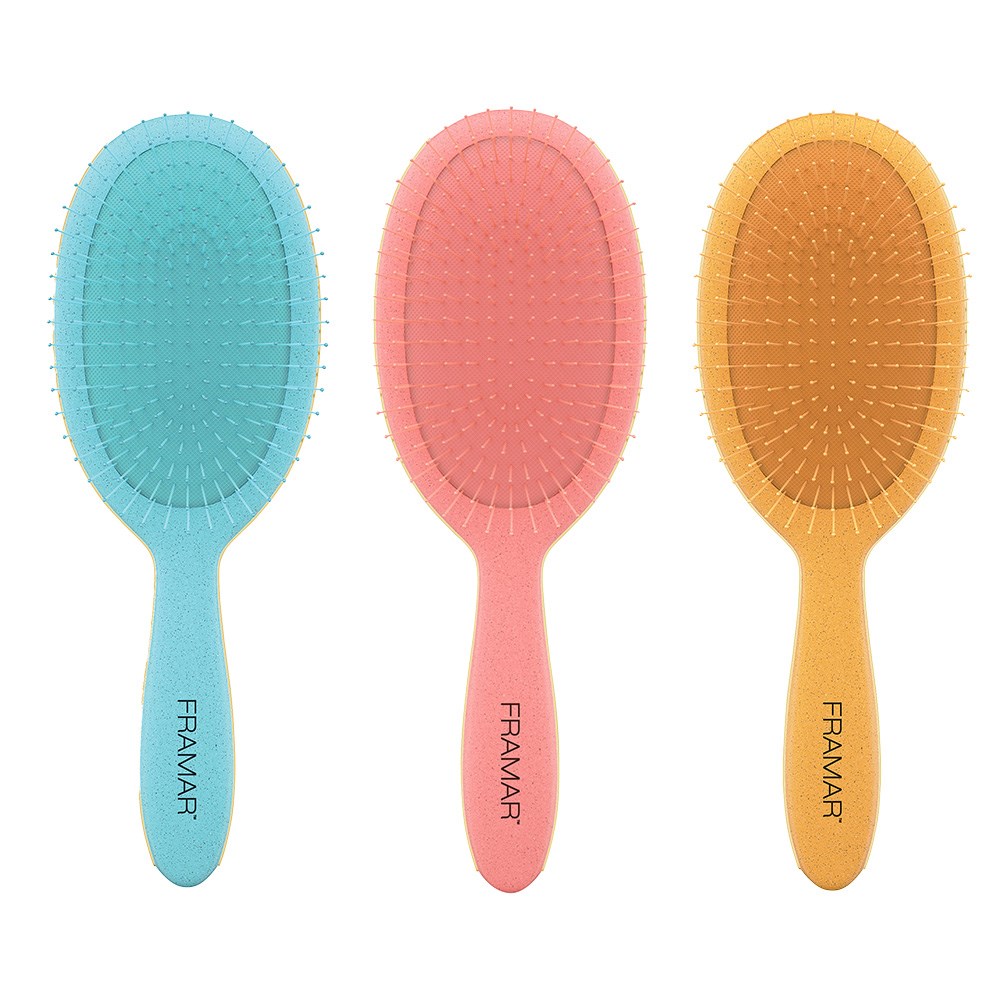 Pack your bags. We’re going on a Baecation! Inspired by a Hawaiian honeymoon, Framar Detangle Hair Brush Baecation Sand is your new favourite. Effortlessly detangle wet or dry hair with ease. Ideal for all hair types, including wigs and hair extensions. Flexible bristles deliver pain-free brushing. Not only a detangler, this brush is also great at brushing colour or toner through hair for even application or assist in styling, such as brushing out curls.