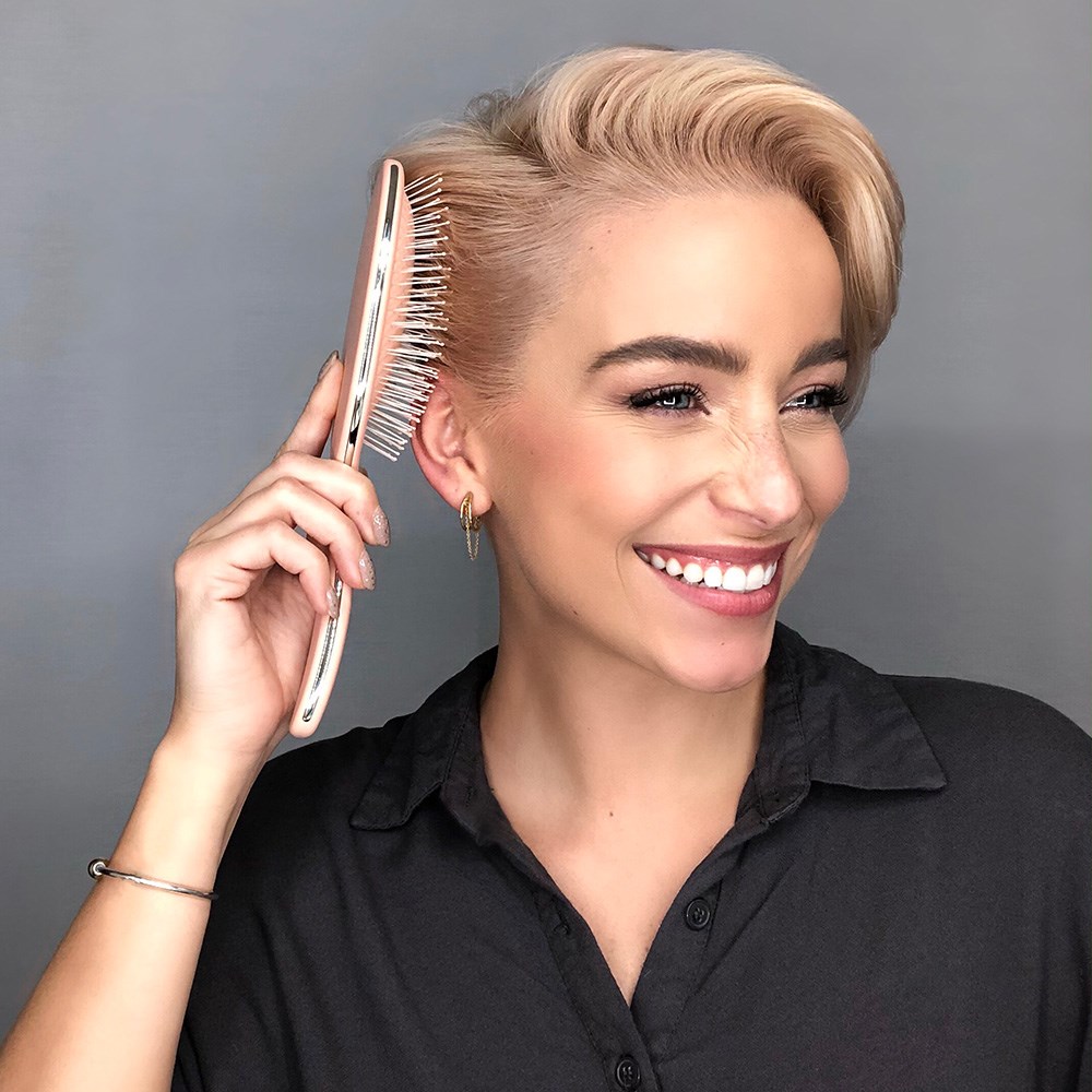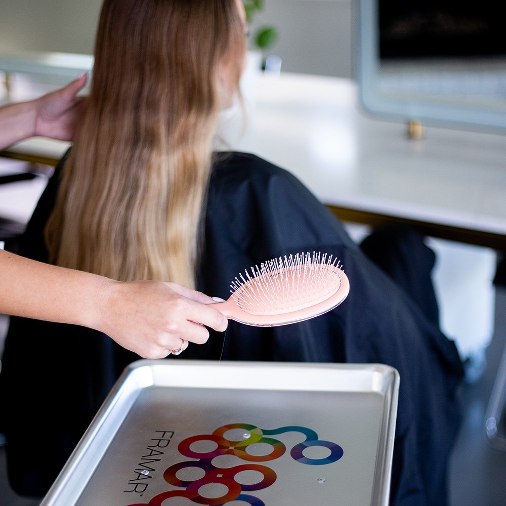 Tangles? Never heard of her! Framar Detangle Hair Brush Champagne Mami is your new favourite. Effortlessly detangle wet or dry hair with ease. Ideal for all hair types, including wigs and hair extensions. Flexible bristles deliver pain-free brushing. Not only a detangler, this brush is also great at brushing colour or toner through hair for even application or assist in styling, such as brushing out curls. A Framar bestseller! Framar, female founded & family owned.
