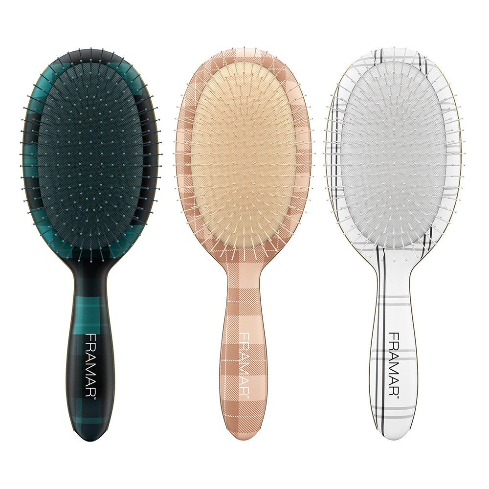 Tangles? Never heard of her! Meet the Framar Detangle Hair Brush Rory from the Plaid Hair Day collection - your new favourite. Effortlessly detangle wet or dry hair with ease. Ideal for all hair types, including wigs and hair extensions. Flexible bristles deliver pain-free brushing. Not only a detangler, this brush is also great at brushing colour or toner through hair for even application or assist in styling, such as brushing out curls. A Framar bestseller!