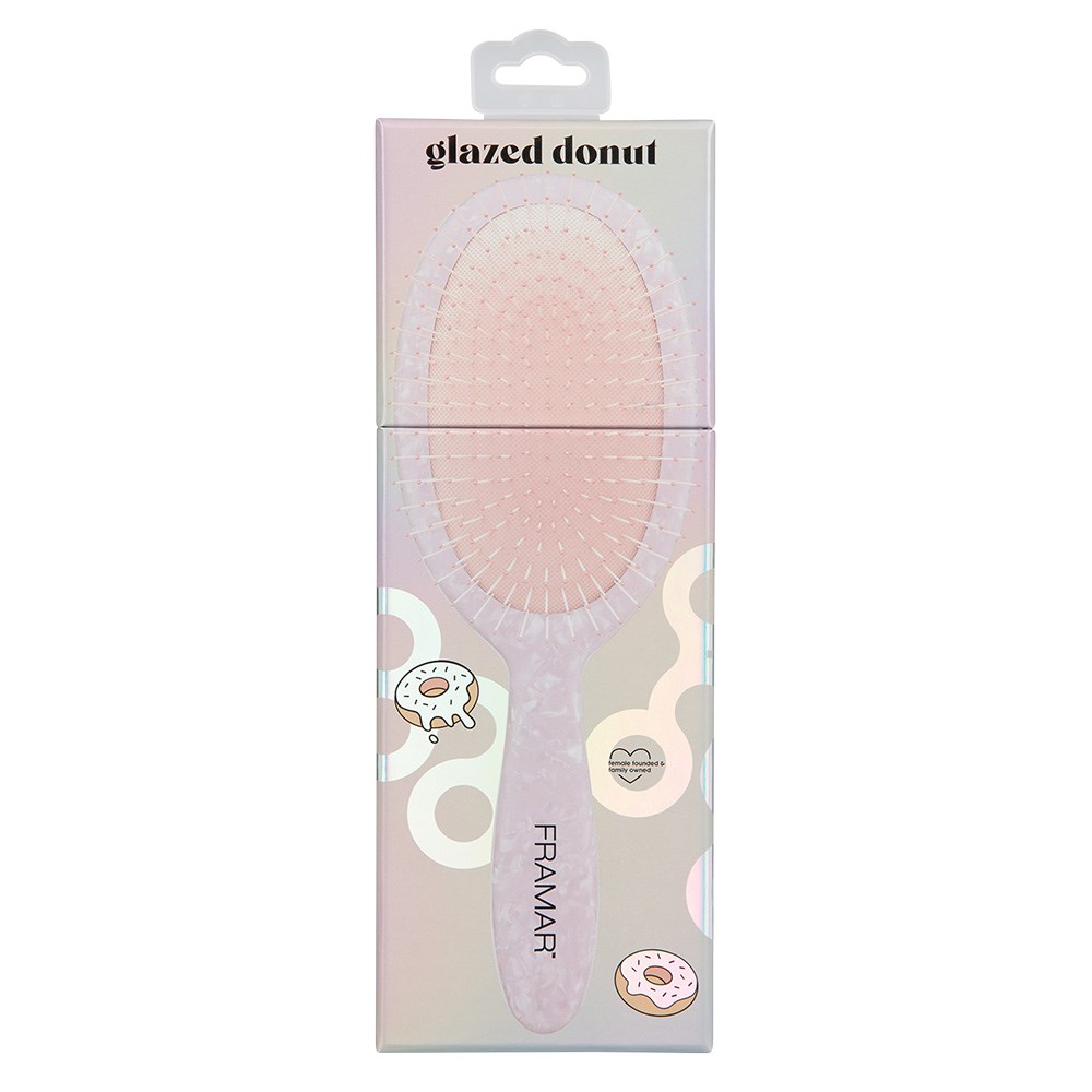 Prettiest pearlescent! With dreamy, soft tones, Framar Detangle Hair Brush Glazed Donut is your new favourite. Effortlessly detangle wet or dry hair with ease. Ideal for all hair types, including wigs and hair extensions. Flexible bristles deliver pain-free brushing. Not only a detangler, this brush is also great at brushing colour or toner through hair for even application or assist in styling, such as brushing out curls.