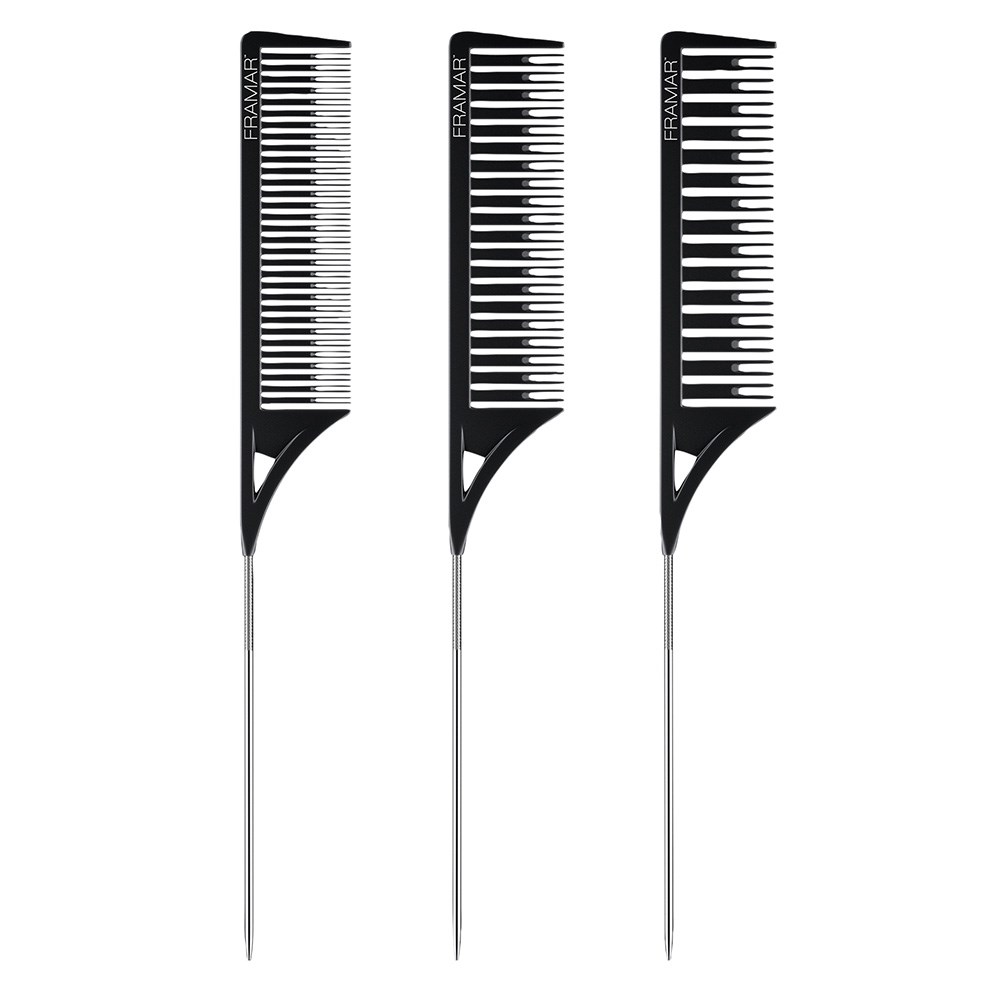 It’s not a dream, Framar Dreamweaver Highlighting Tail Combs 3pk Black are here! Intricately designed to save time behind the chair and shave hours off highlighting applications. The three combs easily separate hair into an even ‘weave’ (how a highlight would be traditionally sectioned). Lightweight, easy-to-use with a 12.7cm (5”) stainless steel tail for parting and sectioning hair. Three different sized weave combs to suit all services, from fine weaves to thicker highlights.