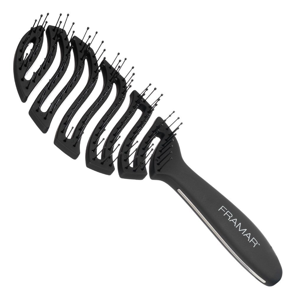 Designed for movement and airflow, Framar Flex Hair Brush Black is heat resistant and perfect for blow-dries. Moving with your scalp, this brush glides through the hair with ease, bending when needed while speeding up drying time. Effortlessly detangles stubborn knots on wet or dry hair. Ideal for all hair types, including wigs and extensions.