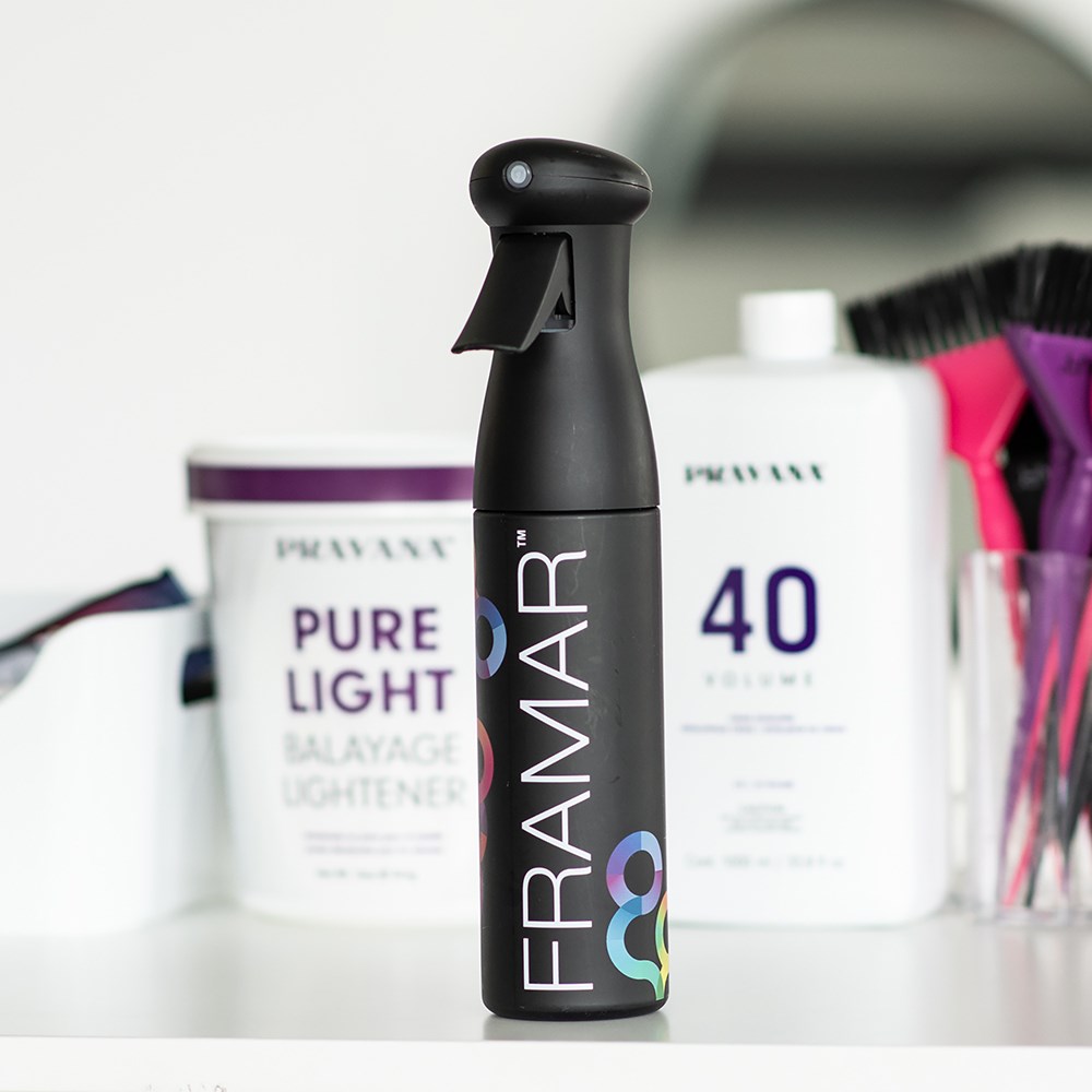 Damn, that’s a fine mist! Framar Myst Assist Spray Bottle in Black is a sleek spray bottle which is easy on the eyes and even easier on the hands. This easy to use, reusable and refillable bottle sprays up to 30% longer than standard misting bottles. A perfectly even mist no matter how many times you pump it.