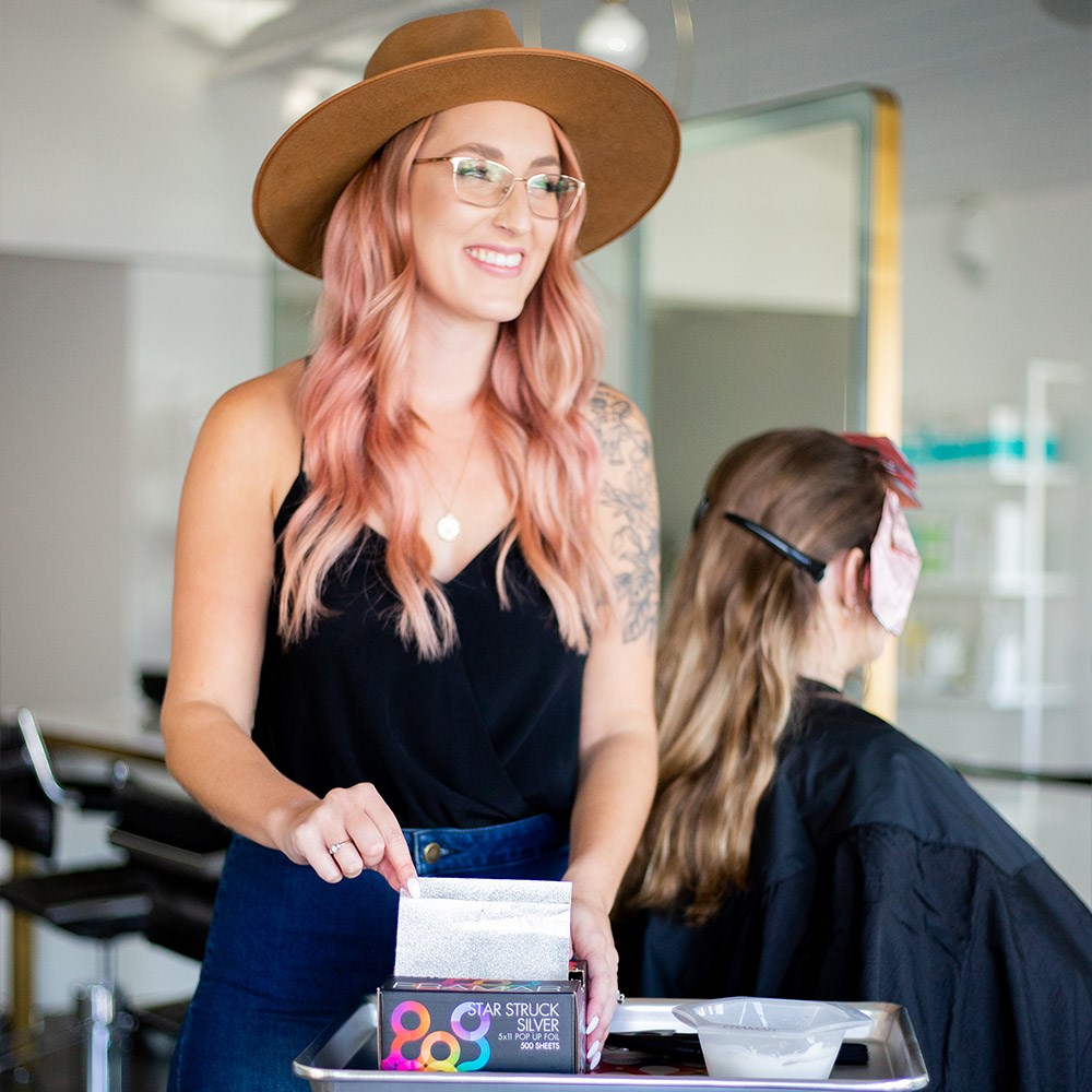 This non-slip foil is everything a stylist dreams of! Framar Pop Up Foil Star Struck Silver is pre-cut, pre-folded and ready when you are. The embossed texture prevents slippage so you can breeze through any colouring service. High quality hairdressing foil in classic silver guaranteed to make every process more fun for you and your client. Featuring the signature, perforated push up base, designed to keep foils extra perky for ultimate convenience. Includes 500 sheets with each sheet measuring 12.7cm x 27.94cm. A Framar favourite!