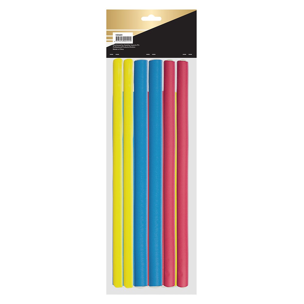 Create salon-quality curls and waves at home with the Hair FX Flexible Rollers. This 18-piece assorted pack includes a variety of roller sizes to suit all hair lengths and styling needs, giving you the flexibility to craft everything from tight ringlets to soft, voluminous waves. Made with soft, bendable foam, these rollers are comfortable enough for overnight use and require no heat, making them perfect for damage-free styling. Ideal for setting or perming as they will not absorb the solution. Easy to use, just bend to hold in place.