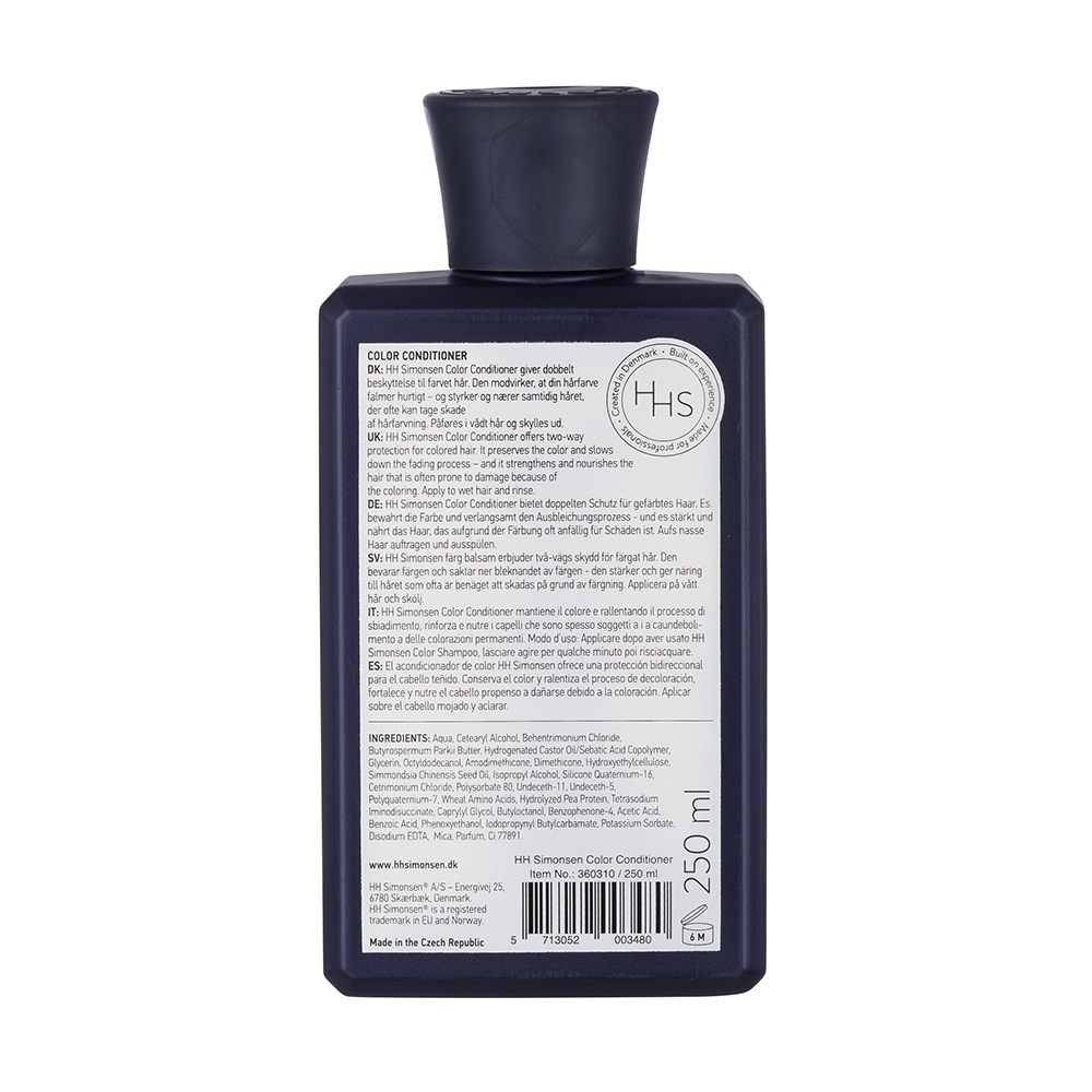 Keep your colour and protect your hair. HH Simonsen Colour Conditioner offers two way protection for coloured hair. This conditioner preserves colour vibrancy and slows down the fading process. Nourish and fortify hair with wheat-based amino acids, jojoba oil and shea butter to help hair retain strength and shine. Hair is left radiant, smooth and shiny with necessary moisture. This is ultra-effective colour care and protection.