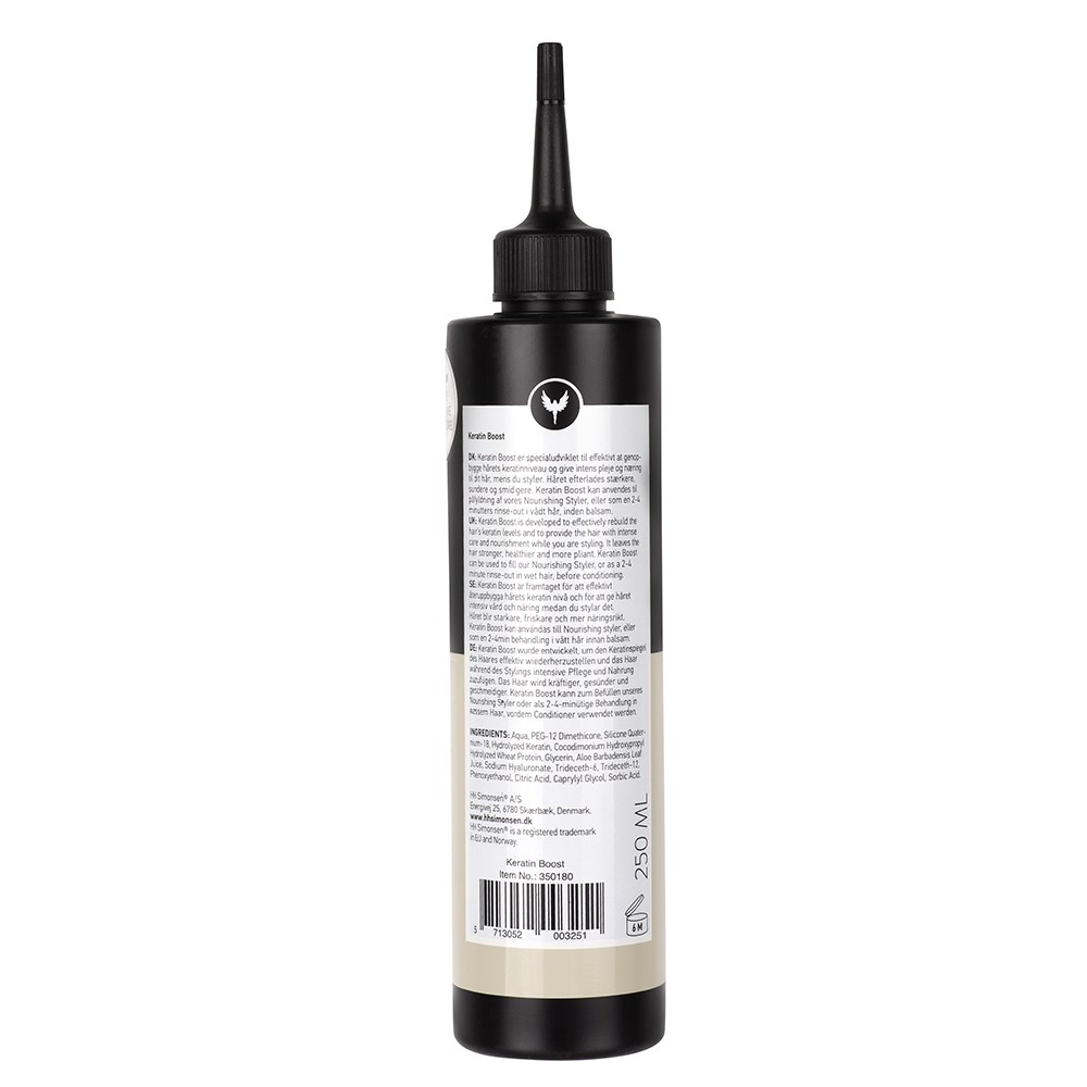 Keratin, the building block of hair. Imagine ultra-shiny, fresh and lively hair every day – like you’ve just stepped out of the salon. For hair damaged by sunlight, saltwater, hair products and heated styling tools, HH Simonsen Keratin Boost is specially developed to rebuild hair’s keratin. Intense care, shine and nourishment for hair. The perfect product for salon-like hair every single day. Created in Denmark. Built on experience. Made for professionals.