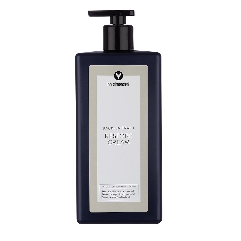 Get hair back on track. HH Simonsen Restore Cream 700ml is created to renew and restore tired, dry and damaged hair after chemical treatments. This clever hair treatment cream strengthens hair, returning it to its natural pH level, leaving hair shinier, stronger and healthier looking. Damage, frizz and split ends are reduced. Enriched with vitamin E and jojoba oil to nourish hair from within.