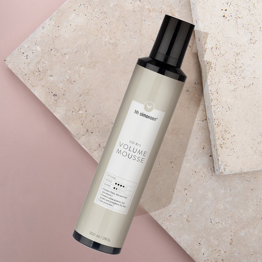 HH Simonsen Volume Mousse is created to add volume and texture to any hair type, while still keeping hair light and flowy. This innovative mousse contains fibres which build up around the hair, making hair feel thicker and fuller, as well as providing hold. Enriched with wheat protein to protect and strengthen. Styling gets bigger and better with HH Simonsen. Created in Denmark. Built on experience. Made for professionals.