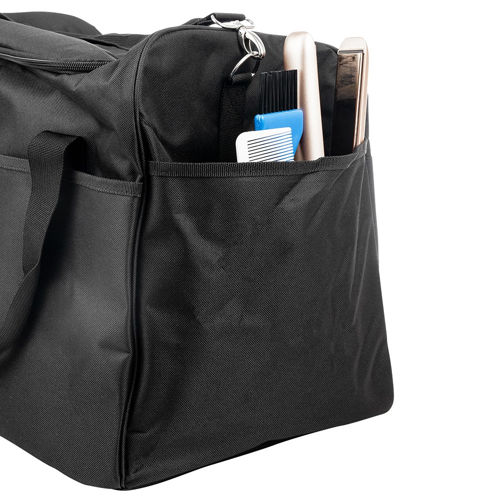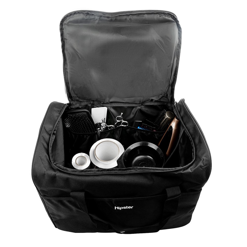 On the move? Hipster Salon On the Move Equipment Bag is your new favourite companion. This lightweight, padded equipment bag with detachable, extendable shoulder strap is the perfect bag for on-the-go hairstyling. Sturdy zippers will stand the test of time. Plastic feet for durability. Moveable padding on shoulder strap for ultimate comfort. Magic-grip closing pocket on front of bag. Large zip pocket on back of bag. Large, deep main compartment with 2 x elastic pockets inside. Bag measures 44cm (L) x 31cm (W) x 31.5cm (H).