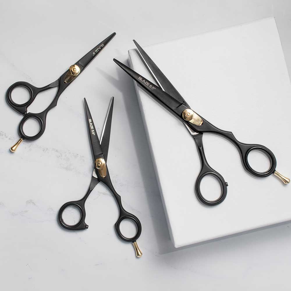 Iceman’s chicest scissors ever. In all black with gold detailing, Iceman Blaze 6” Black Hairdressing Scissors feature hand-honed stainless steel blades for truly exceptional cutting performance. A great choice for precision work, these scissors have superb ergonomics with a level set handle, removable finger rest and adjustable, raised tension dial. Ideal scissors for apprentices or a backup pair for your hairdressing kit.