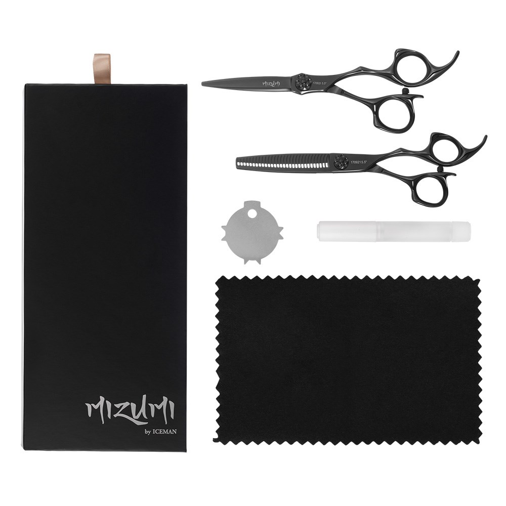 When precision is everything, compromise isn’t an option. Mizumi by Iceman Katani 5.5” Hairdressing Scissors and Thinner Set Black is a celebration of Japanese-inspired craftsmanship, designed for hair professionals who demand the best. Meticulously forged from VG10 steel, enriched with cobalt and high carbon content, this set delivers unparalleled sharpness, exceptional durability and superior corrosion resistance. Includes 5.5” hairdressing scissors and hairdressing thinner with 28 teeth.