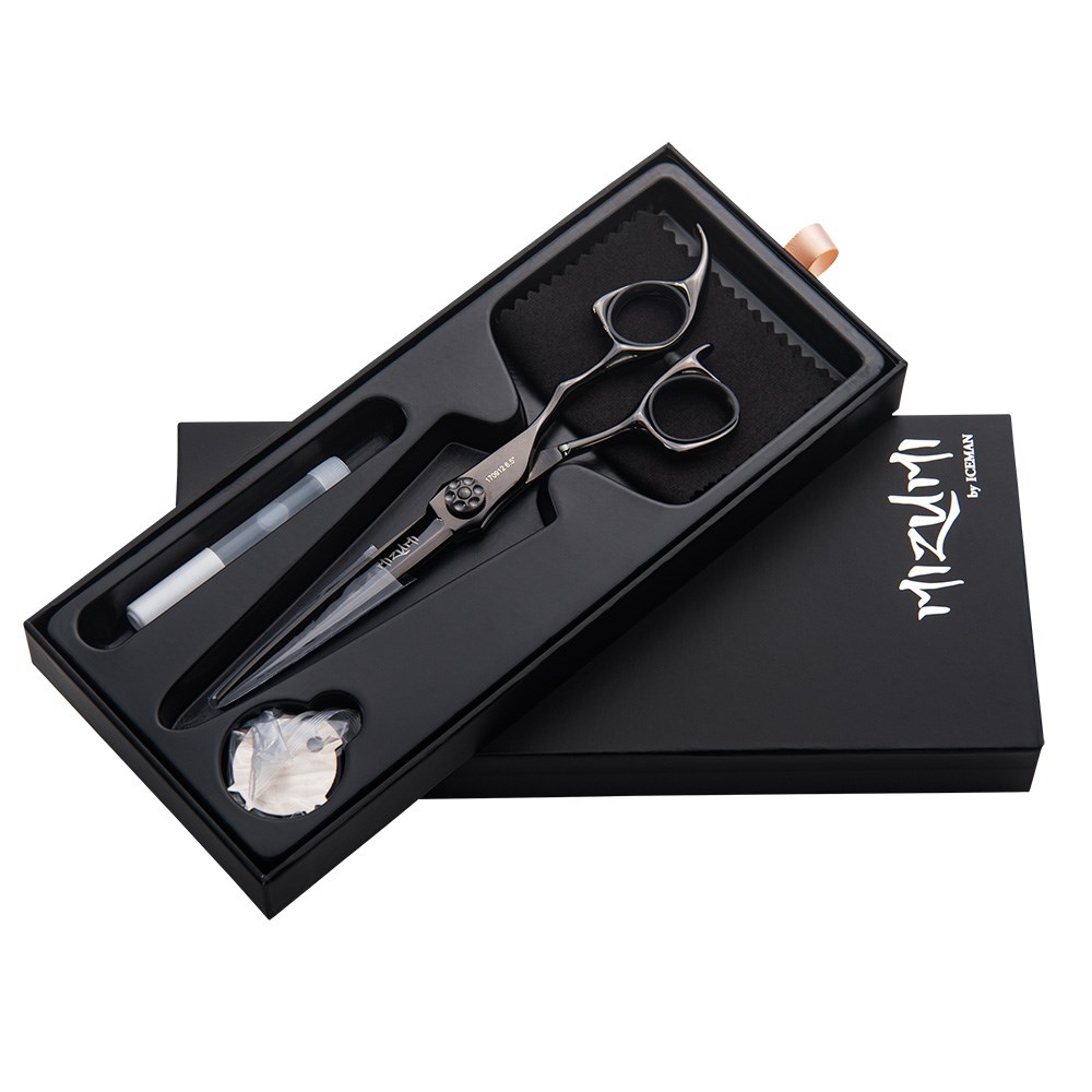 When precision is everything, compromise isn’t an option. Mizumi by Iceman Katani 6.5” Hairdressing Scissors Black are a celebration of Japanese-inspired craftsmanship, designed for hair professionals who demand the best. Meticulously forged from VG10 steel, enriched with cobalt and high carbon content, these scissors deliver unparalleled sharpness, exceptional durability and superior corrosion resistance. 6.5” is perfectly suited to scissors over comb cutting techniques. Designed to meet the needs of senior hairstylists and barbers.