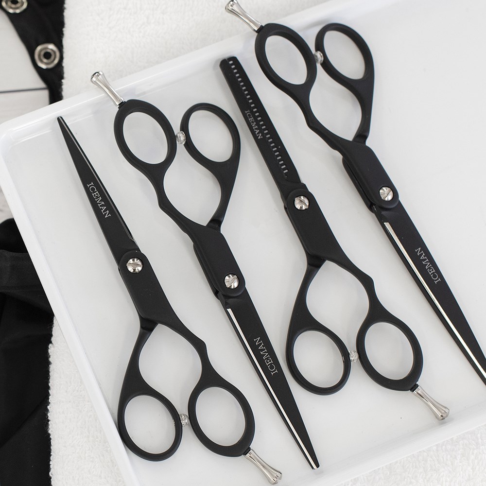 Luxurious yet highly affordable. Iceman Nano 6.5” Hairdressing Scissors Matte Black feature precise micro-serrated and hand-honed stainless steel blades for truly exceptional cutting performance. A great choice for precision work, these scissors have superb ergonomics with an offset handle and removable finger rest. Ideal scissors for apprentices or a backup pair for your hairdressing kit.