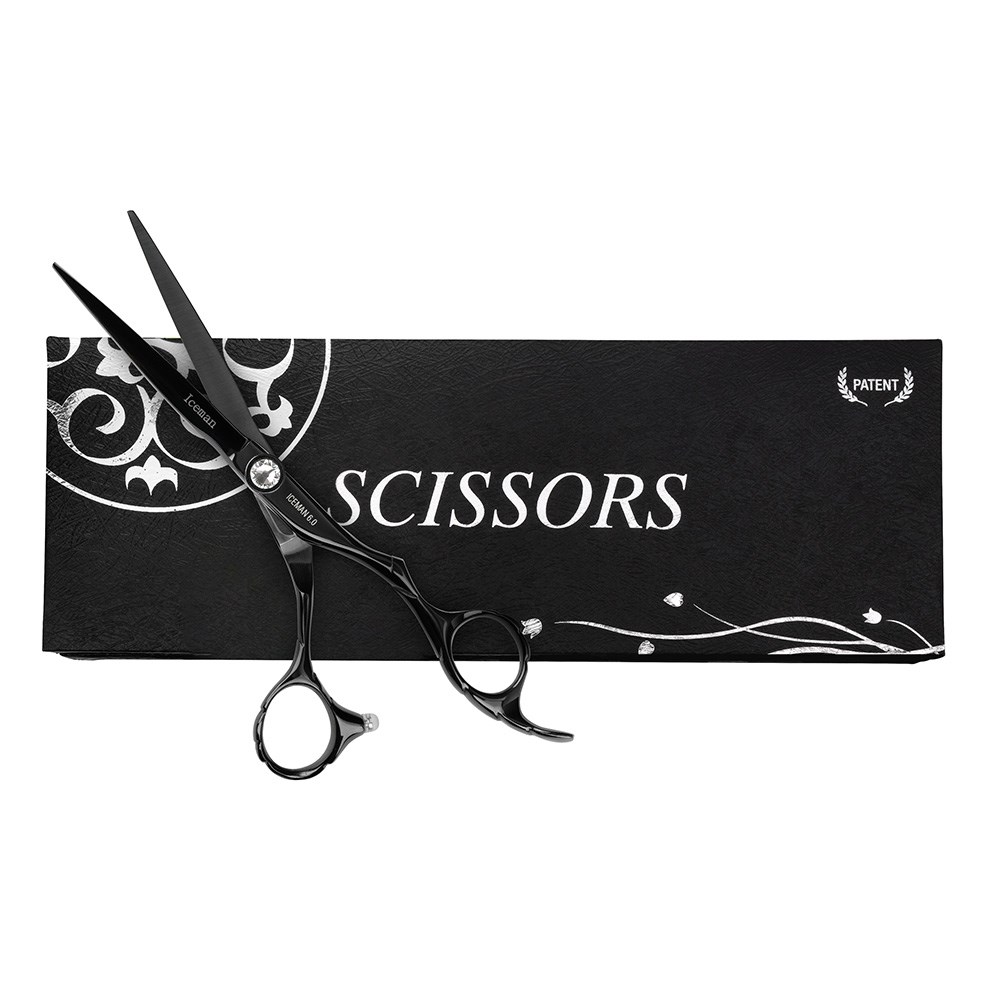 The best scissors to enhance your craft. Iceman Suntachi VG10 6” Hairdressing Scissors are crafted to precision. VG10 is a composite alloy consisting of cobalt and high carbon content. Cobalt enhances strength, robustness and durability, while high carbon content maintains sharpness for a long time. Less likely to dull, corrosion resistant with enduring sharpness makes these scissors perfect for the salon environment. Iceman Suntachi VG10 6” Hairdressing Scissors feature an offset handle for a more open, comfortable position. Cutaway thumb offers additional comfort. These black, scalloped scissors are perfect for cutting, slicing, scissor-over-comb techniques and more. Adjustable, jewelled, raised tension dial. Includes lubricating oil and finger rest insert.