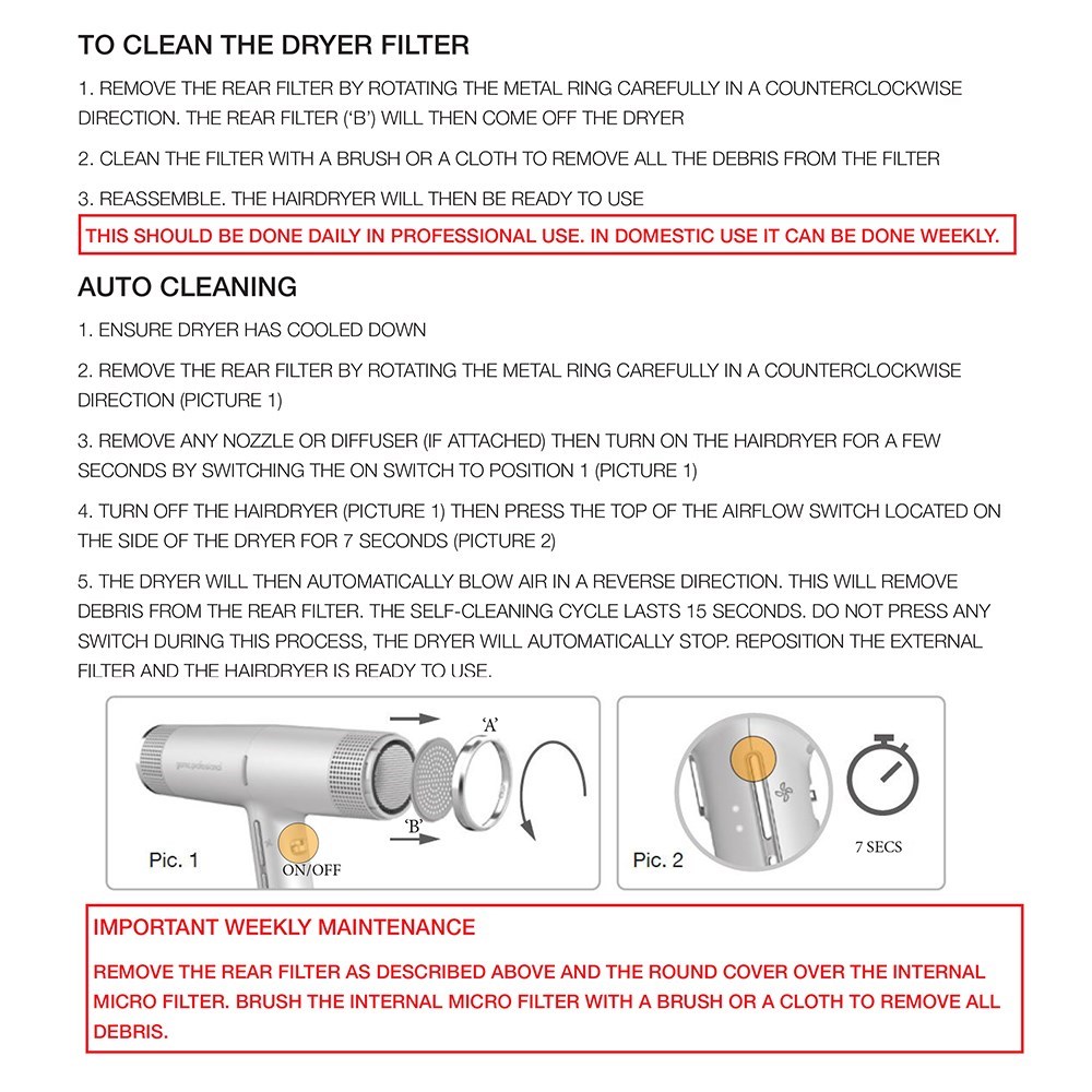 - Prevents hair, hairspray and dust from entering the dryer motor