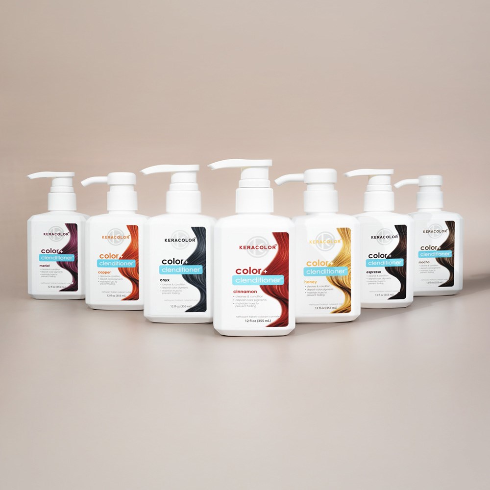 Meet Cinnamon. Sweet and spicy red just like cinnamon, Keracolor Color + Clenditioner Colour Shampoo Cinnamon is a 3-in-1 colour, cleanse and condition formula with semi-permanent colour to enhance, transform and tone. Colour while you cleanse with this non-lather conditioning cleanser designed to instantly infuse colour into hair with every wash. Add stunning hues, maintain vibrancy, and kick up colour between salon visits.