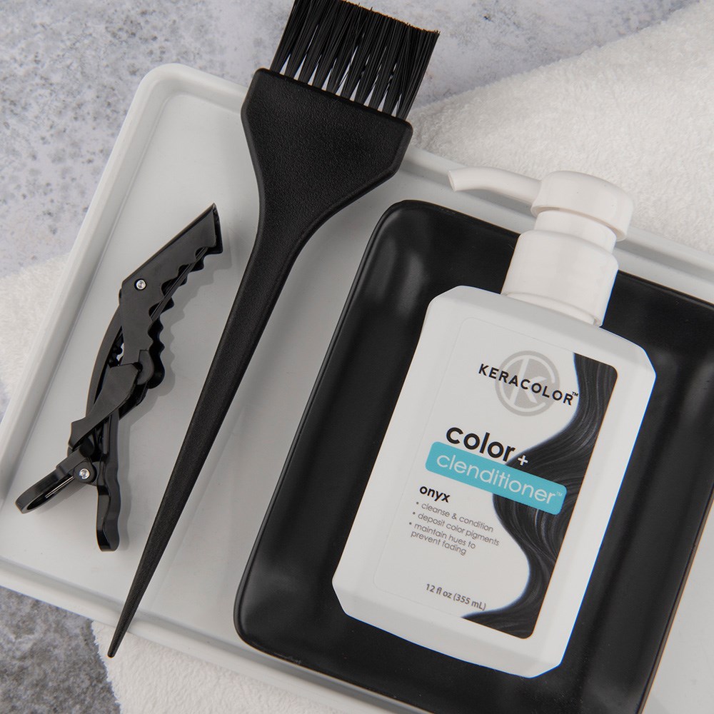 Meet Onyx. A deep, cool-based black tone, Keracolor Color Clenditioner Colour Shampoo Onyx is perfect for adding black tones back into faded hair. Colour while you cleanse with this non-lather conditioning cleanser designed to instantly infuse colour into hair with every wash. Add stunning hues, maintain vibrancy and kick up colour between salon visits.