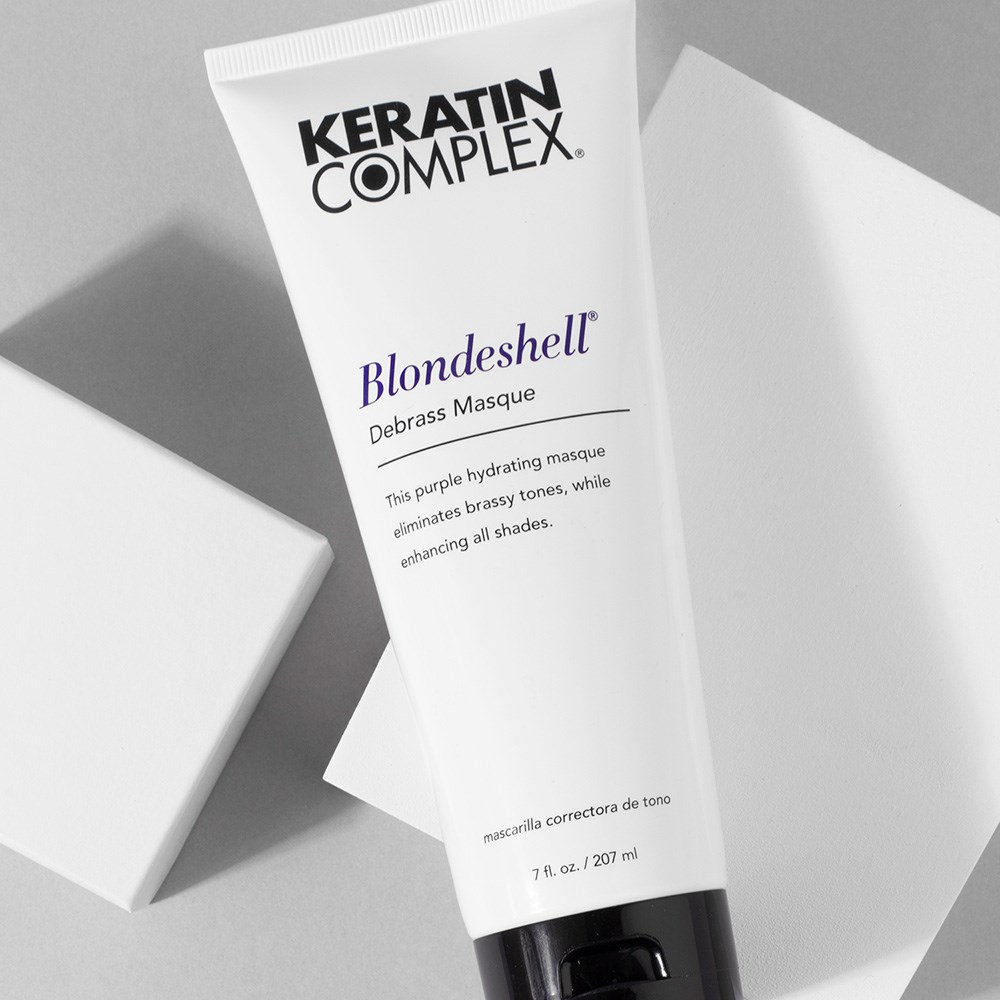Eliminate brassy tones and rebuild resilience with this hair treatment. Keratin Complex Blondeshell Debrass Hair Masque is a purple hydrating masque which eliminates brassy tones while enhancing all shades and types of hair, including dry, damaged and keratin-treated. Keratin Complex’s signature keratin rebuilds essential proteins within the hair for improved elasticity. The purple formulation neutralises brassiness for instant renewal. An exclusive blend of antioxidants, oils and extracts strengthens and repairs weak and fragile hair. Shea butter nourishes and helps retain moisture within hair.