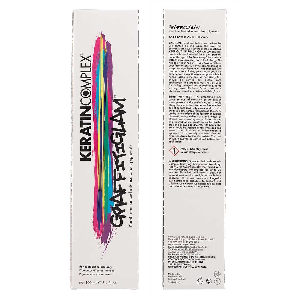 Glamorous, beautiful hair colour inspired by the vibrant art form, graffiti. Keratin Complex GraffitiGlam Hair Colour Clear is a dynamic ammonia-free, semi-permanent, keratin-enhanced, direct dye hair colour. Use to create bold, expressive colour or intermix with Clear to produce soft, pastel hues. Advanced, patented technology with precisely proportioned, protein-rich formulas of keratin and ceramides reduces porosity and prevents damage. Unrivalled long-lasting, even colour which strengthens hair.