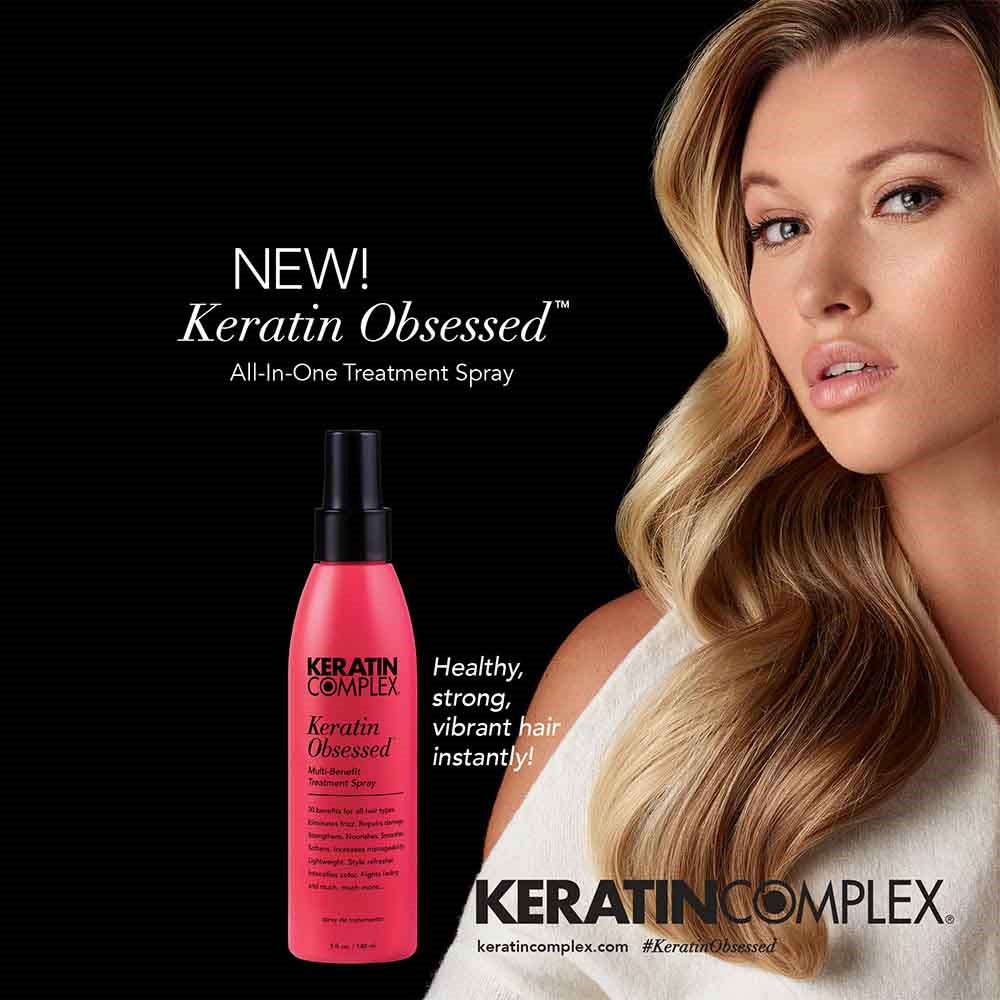 The Keratin Complex Keratin Obsessed is a Multi Benefit Treatment Spray that packs in 30 benefits for all hair types. Benefits include but are not limited to, eliminating frizz, repairing damage, strengthening, nourishing, smoothing, softening, increasing manageability, lightweight, style refresher, intensifying colour, fights fading and much, much more.