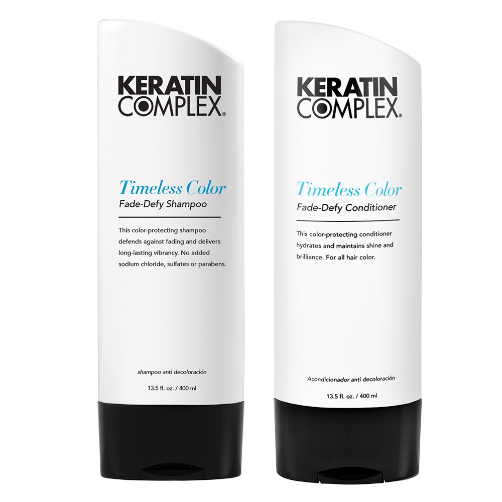 From the deepest browns to the richest reds and every shade in between, Keratin Complex Timeless Colour Conditioner promotes first day depth and brilliance with every use. This nourishing formula harnesses the power of hydrolysed keratin to reinforce the hair’s own protective barrier. A unique blend of ingredients weightlessly shields the hair shaft, enveloping colour pigments to preserve longevity.