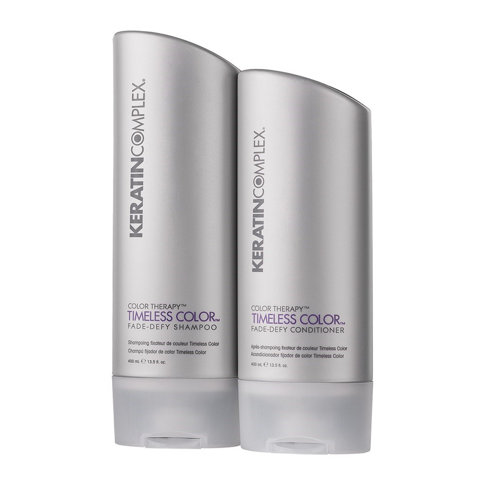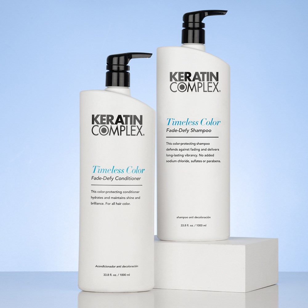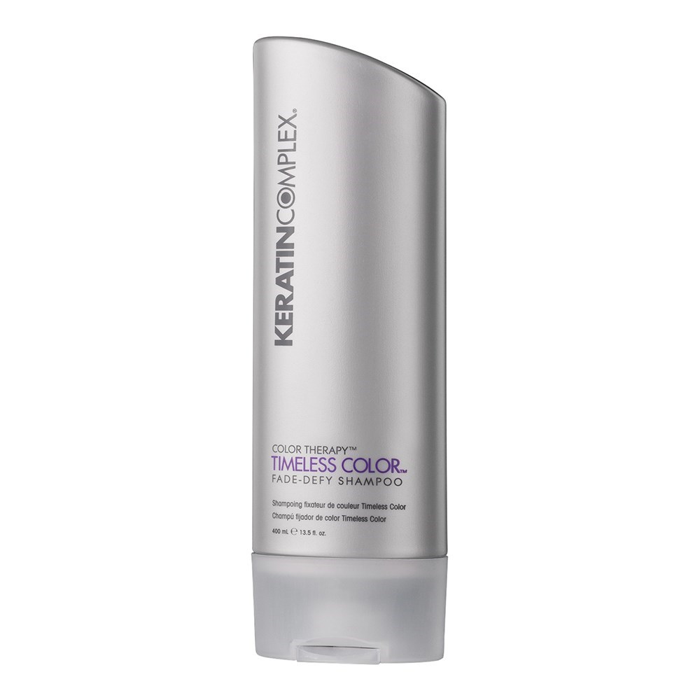 Keratin Complex’s Timeless Colour Fade Defy Shampoo helps secure pigments within the hair shaft to promote long-lasting, vibrant colour. This gentle, sodium chloride- and sulfate-free formula harnesses the power of hydrolysed keratin to reinforce the hair’s own protective barrier. Its unique PolyQ blend defends against the elements that cause colour fade, such as environmental factors and heat styling.