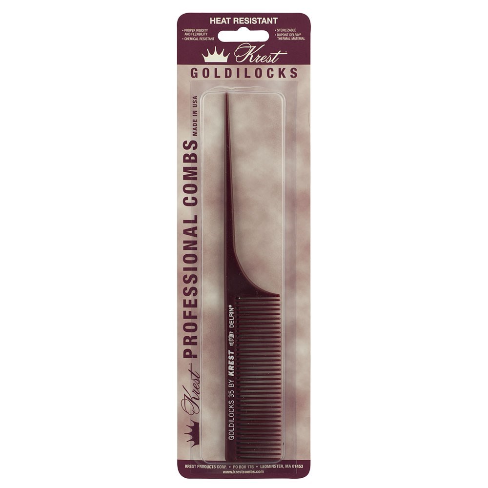 Krest Goldilocks G35 Large Plastic Tail Comb is just right for sectioning hair prior to styling, cutting, colouring, perming or blow-drying. Made from DuPont Delrin, this comb features superior strength, low friction and heat resistance. Chemical resistant and sterilisable. The proper rigidity and flexibility to meet all your needs.