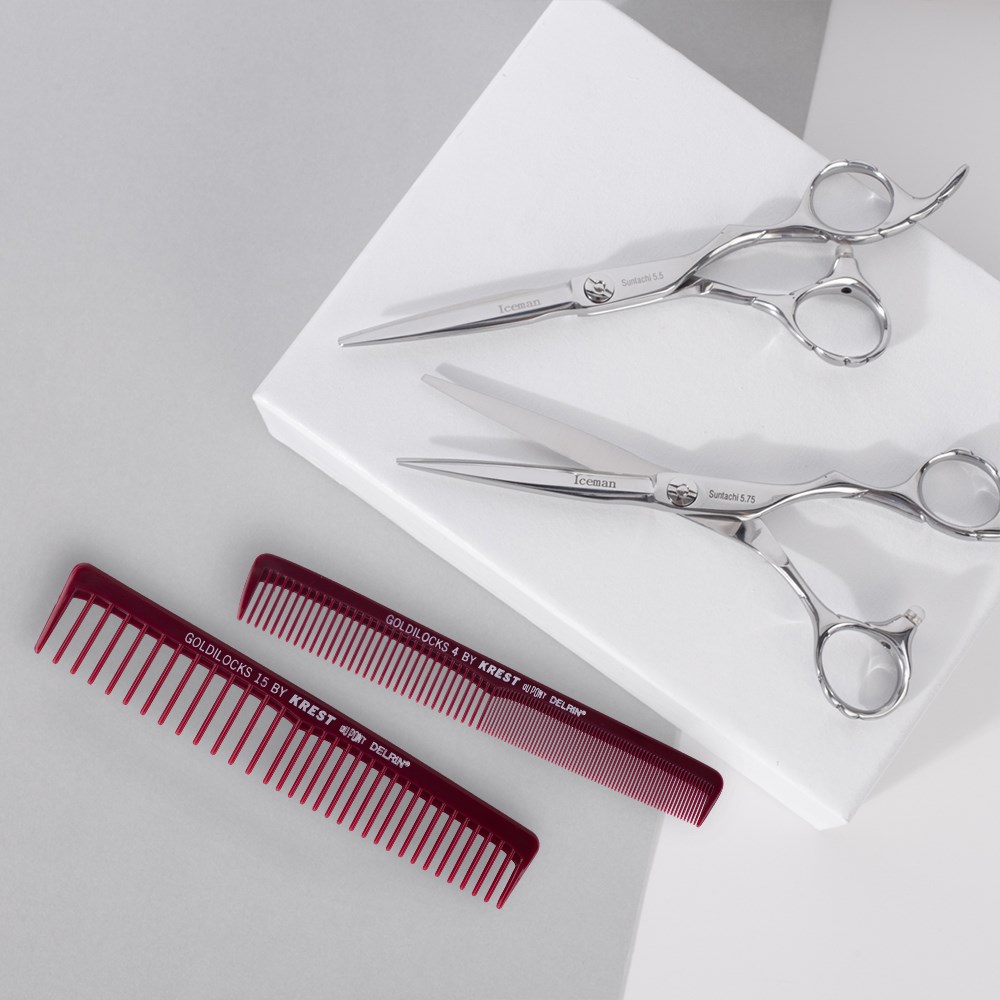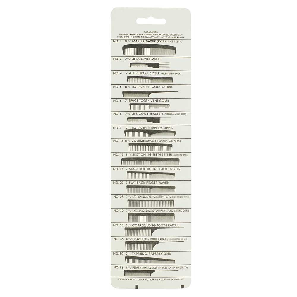 Krest Goldilocks Cutting Comb is made from DuPont Delrin for added strength, low friction and heat resistance. Features wide teeth for low tension combing on thick or curly hair, and fine teeth for precision cutting with tension and control.