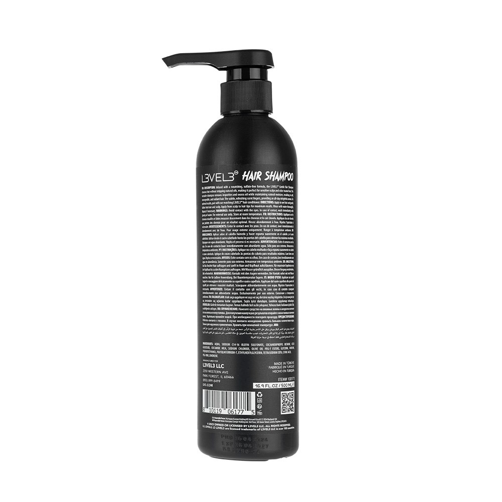 L3VEL3 Hair Shampoo is gentle cleansing for radiant hair. This non-drying shampoo is the perfect balance between gentle cleansing and deep nourishment, leaving hair feeling refreshed and renewed. The sulphate-free formula removes impurities and excess oil while preserving hair’s own moisture. Suitable for everyone, the creamy texture glides effortlessly through hair while the soft scent lingers. Hair is left manageable and hydrated. Level up.
